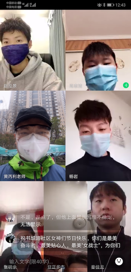 3月8日,建筑工程学院信管1901班全体学生和18级各专业班长在班主任黄丙利老师的带领下开展“线上主题、致敬巾帼英雄”主题班会。今天正值第110个“三八”国际妇女节,在这个与以往不同特别的节日里,把主题班会开展防疫抗疫一线,让我们走进防疫抗疫第一线基层社区,向工作在一线的社区工作人员致以崇高的敬意!