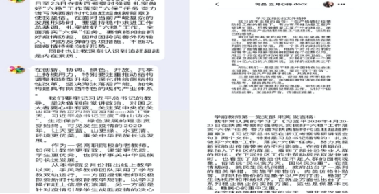 本次采用“线上动员大家学+线下党员自主学”的形式,充分运用学习强国APP加强线下自学、线上交流,重点学习《2020年全市工作怎么干?今天召开的全市组织部长会议给你划重点!》、《习近平2020年4月20日至23日在陕西考察时强调 扎实做好“六稳”工作落实“六保”任务 奋力谱写陕西新时代追赶超越新篇章》、《习近平总书记在浙江考察调研讲话金句》,各位党员同志纷纷发表学习感悟,并在会议上交流探讨。