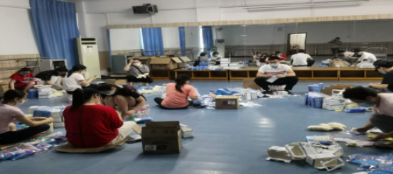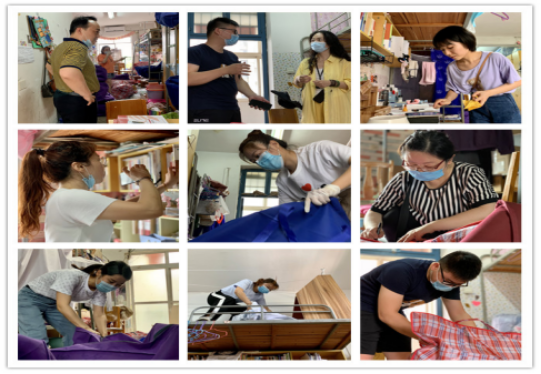邮寄完行李,为给返校同学提供一个干净整洁的环境,领导老师又迅速投入到打扫整理寝室、做好宿舍消毒等工作,布置毕业生返校的现场,同时为毕业生准备“防疫大礼包”等等......随处可见领导老师忙碌的身影。