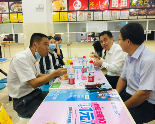 2020年9月10日上午,校长邓院方和党政办公室、学工处、后勤处、保卫处负责人一行5人深入学生食堂和学生寝室,调研关怀学前教育学院学生在校的就餐情况和生活情况,学前教育学院院长卓萍、党总支书记金东波、副书记张沛一同前往。