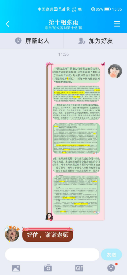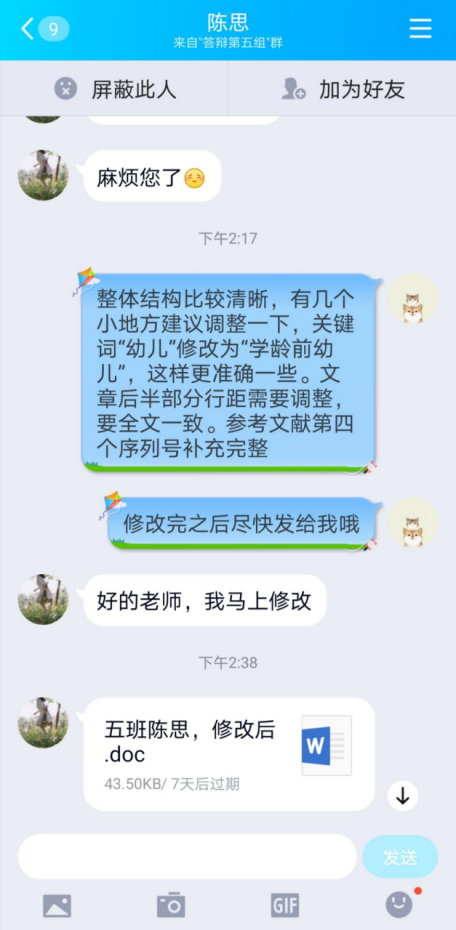答辩当天,学生们首先就自己论文进行阐述。论文围绕学前教育专业领域问题进行研究,如幼儿教师职业发展、心理健康;促进师生互动、家园合作;做好幼小衔接的方法与策略等。随后指导老师从选题背景、选题意义、结构框架、理论联系实际等方面对学生一一进行提问,并就学生论文格式、语句等问题耐心、细致指导。学生们纷纷表示通过此次答辩,进一步理清了论文思路和写作方式,为今后在幼儿园开展科研工作奠定良好基础。