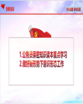 在创新活动部分,马豫书记带领大家学习了《公务员保密知识读本》以及做好新形势下意识形态工作。