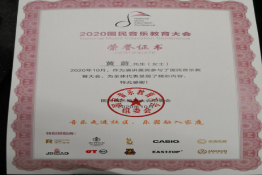 (中国乐器协会王世成理事长向黄蔚老师颁发主讲嘉宾证书)