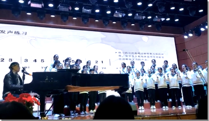 展示课的最后张老师和同学们为大家带来了一首合唱《英雄赞歌》