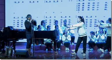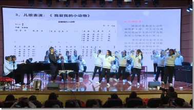 教学中张老师也非常注重培养学生对音乐活动的设计能力,他和同学们合作完成了一首儿歌表演《我爱我的小动物》,同学们自己创编动作,张老师用不同的乐器(手风琴、巴乌、口琴)伴奏,丰富了学生的听觉体验,激发了学生的音乐表现力,也让现场的师生耳目一新。