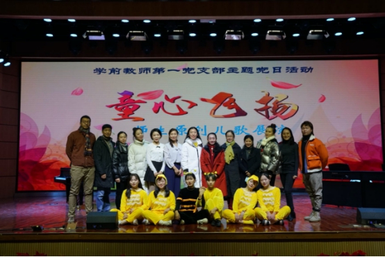本月学前教育学院开展的“童心飞扬——师生原创儿歌展演”于12月17日下午两点半拉开帷幕。本场展演分为三个场景,其表演形式令人耳目一新,称赞不绝。在活动的准备工作中,学前教师第一党支部的各位党员同志全力以赴,投入其中,积极指导。通过本次活动,教师第一党支部的党员同志们发挥先锋模范的榜样引领作用,彰显了担当作为的优秀品格。今后在各项工作中,党员同志们也将心中牢记担当作为的使命,继续前行,以自身的不懈努力,争做爱岗敬业、甘于奉献的标杆,为实现学院高质量发展,凝心聚力,共同努力!