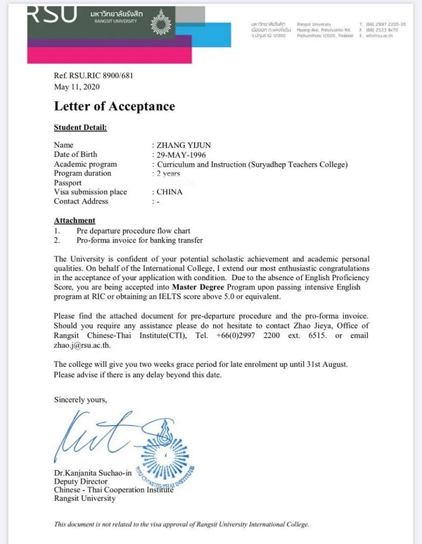 在确定了我的预算之后,我就把目标锁定了匈牙利,泰国,马来西亚这三个国家,最后确定了泰国这个微笑和自由的国家-----兰实大学。兰实大学(RANGSIT UNIVERSITY) 是泰国教育部注册的综合性大学。学历得到中国教育部认证,2020年GOOGLE学术影响力排行榜中,兰实大学私立大学排名第一。她还是是一所明星大学,很多泰国明星就是毕业于这所大学。如,主演(YES OR NO)系列的电影主演TINA,泰国亚洲航空很多商业代言人的男星Nadech, 还有电影《鬼夫》的女主角Mai Davika , 还有《一年生》的拍摄都是在兰实大学,中国明星陈伟霆在兰实大学拍摄过OPPO手机广告等等。