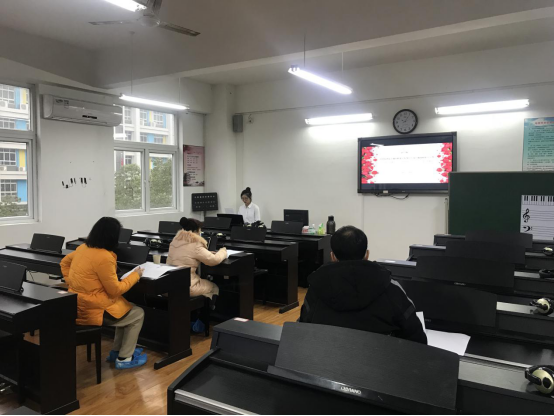 美术考试结束后分组同步进行儿歌弹唱、幼儿故事讲述及舞蹈表演考试。在儿歌弹唱过程中,考生们的弹唱基本功不错,动作和指法到位,伴奏能力强。