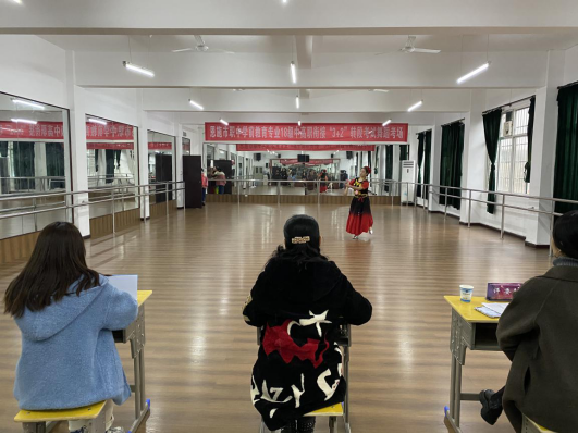 舞蹈表演考试考生需要完成1个3分钟的成品舞,考生们都身着舞蹈服,跟随音乐翩翩起舞,少数考生舞蹈基本功扎实,感情投入,表现力强,赢得了考官们的一致认同。