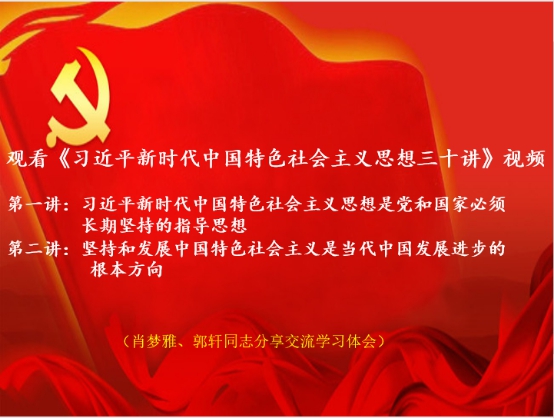 第六项创新活动中,学前教师第一党支部的同志们观看《习近平新时代中国特色社会主义思想三十讲》视频,肖梦雅、郭轩同志依次分享了第一讲《习近平新时代中国特色社会主义思想是党和国家长期坚持的指导思想》与第二讲《坚持和发展中国特色社会主义是当代中国发展进步的根本方向》的学习体会。