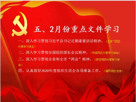 为深入学习贯彻习近平总书记近期重要讲话精神和认真做好2020年度组织生活会各项准备工作,根据中共武汉市委组织部下发的全市2021年2月份党支部主题党日重点学习内容提示,学前教师第一党支部于2021年2月27日上午9时在艺术楼一楼会议室开展2月支部主题党日活动,会议由学前教师第一党支部书记谢民同志主持,支部全体党员同志参加了会议。