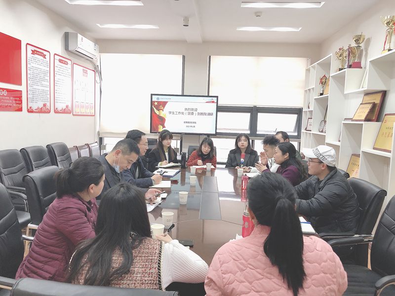 为倾听各学院对学生工作的意见和建议,促进学校学生工作重心下移,更好地服务各学院学生工作,沟通交流新学期学校德育工作要点和创新,2021年3月9日—3月23日,我校学生工作处班子成员及部门各办公室负责人一起,集中调研走访了全校11个学院,就我校新学期学生宿舍“社区化”管理模式构建(市绩效项目)、“三全育人”典型学校建设(“提质培优”行动计划项目)、“名班主任工作室”创建(“提质培优”行动计划项目)、“优秀德育特色案例”培育(“提质培优”行动计划项目)及各学院学生工作开展情况、困难和问题、意见和建议等广泛听取意见。
