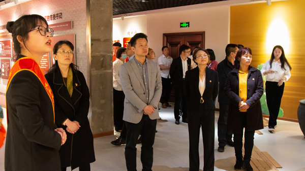 武汉城市职业学院汽车技术与服务学院学生志愿讲解员带领领导师生参观天子山爱国主义教育基地红色与廉政陈列馆。