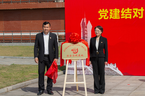 武汉城市职业学院汽车技术与服务学院党总支书记简亚敏、天子山爱国主义教育基地办公室主任陈晓山共同为武汉城市职业学院汽车技术与服务学院“新青年下乡”服务基地授牌。