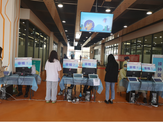 24日下午张书记带领我院学工队伍,查看现场布置情况,询问接种流程安排