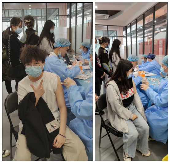 我院学生严格遵守疫情防控要求,全程佩戴口罩,按照规定流程,排队有序接种疫苗。