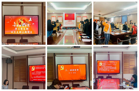 本次会议由学工党支部副书记王文文同志主持,主题党日活动主要分为五项议程。学工党支部全体党员教师首先按期缴纳党费、重温入党誓词和诵读党章。在主题党日的开展学习交流环节,李念同志解读了深入学习贯彻全国两会精神的相关内容,并强调此次大会是举国关注、举世瞩目的大会,铺展蓝图、放眼未来的大会,万众一心、团结奋进的大会;谢聪同志在深入学习贯彻习近平总书记近期重要讲话精神,站在做到“两个维护”、落实以人民为中心发展思想的政治高度,建设好、完善好、管理好、使用好社会保障体系;曾志远同志在认真学习贯彻全国基层党建工作重点任务推进会精神和全省、全市组织部长会议精神时,要求全体党员同志要进一步总结疫情防控工作经验教训,充分发挥基层党组织和党员作用,积极探索符合超大城市特点和规律的基层党建新路,全面增强基层党组织政治功能和组织力;在开展“党员不能信仰宗教”专题学习环节;熊玙同志引导党员严守党章规定,坚定理想信念,严格落实党员不得信仰宗教和参加宗教活动的要求,进一步树牢“四个意识”,坚定“四个自信”,做到“两个维护”,做坚定的马克思主义无神论者。