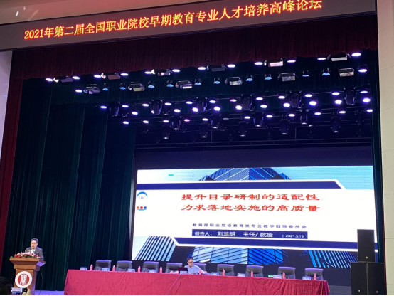 刘兰明主任做了题为《提升目录研制的适配性,力求落地实施的高质量》报告,从专业设置突出“四新”内在逻辑要求,突出专业升级和数字化改造,突出顶级团队的组建指导和突出与各行指委的沟通协调四个角度分析现有专业设置,找准早期教育专业方向,适应新经济发展需求。