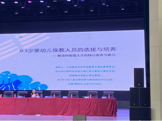 随后,成都师范学院文颐教授从0-3岁婴幼儿保教人员的选拔与培养角度解读0-3保教人才的核心素养与能力。在前期调研基础上,针对目前我国生育现状和四川早教、托育机构现状,提出从业人员选拔需全面了解儿童身心发展、具有较强保育与教育能力以及专业拓展能力,并进行了详细解读。