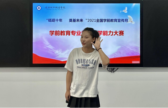 在“全国学前教育宣传月”启动十周年以及《3-6岁儿童学习与发展指南》颁布十周年之际,武汉城市职业学院学前教育学院于6月17日举办了2021年学前教育专业教育教学能力大赛。本赛项以《幼儿园教师专业标准》为依据,通过竞赛,全面考核参赛选手的设计与组织幼儿园活动的专业能力,达到以赛促学、以赛促教、以赛促就业的目的。