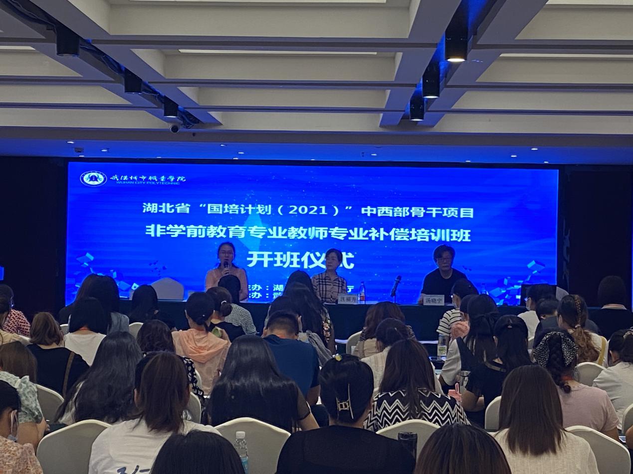 2021年湖北省“国培计划”中西部骨干项目——非学前教育专业教师专业补偿培训班、湖北省“中小学幼儿教师素质提升工程”项目——幼儿教师保教能力提升培训班分别于2021年7月7日、7月8日在禾悦酒店、静安酒店正式开班。开班仪式由继续教育学院董云燕老师主持,继续教育学院院长汪福秀、学前教育学院副院长汤晓宁出席开班仪式,所有培训学员、班主任、志愿者及培训相关老师参加仪式。