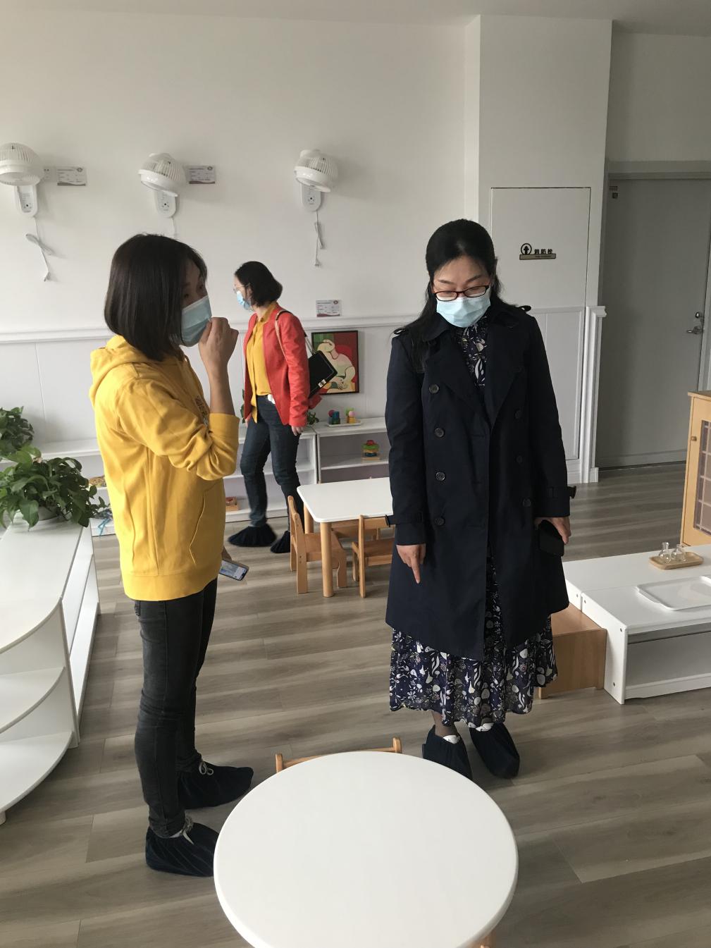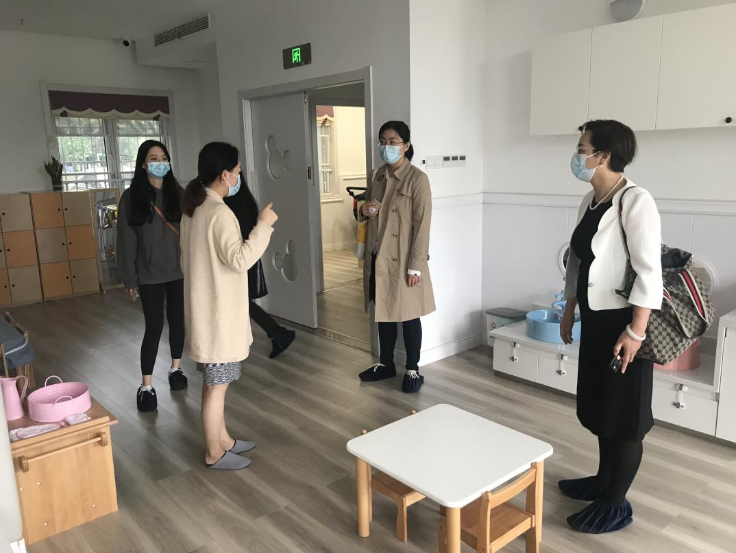江欣苑社区托育园、徐湾社区托育园都是依托社区,由爱绿教育集团旗下贝思优托育品牌承办的全日制托育园。托育园崇尚“自然与自由、适性且适龄”的全人发展理念,旨在通过孩子浸入式的一日生活经验,促进孩子身心灵全面发展。我们参观了活动室、配餐间、消毒间、卫生间等,学院领导、老师就消毒流程、师资配比、教师专业要求、园所运营情况等方面进行交流。