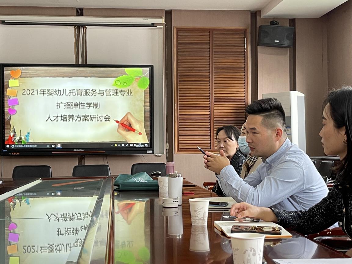 10月12日,我院2021年婴幼儿托育服务与管理专业扩招弹性学制人才培养方案研讨会在艺术楼1楼会议室顺利召开。参会人员有学前教育学院院长卓萍、副院长汤晓宁、副院长杨素苹、教学办主任胡沙、副主任赵红杰,教学办程智、扩招班班主任胡婷婷、辅导员叶晓芳、企业代表湖北省育婴协会会长黄明、一土外国语幼稚园邓校长、杨校长一行6人等。