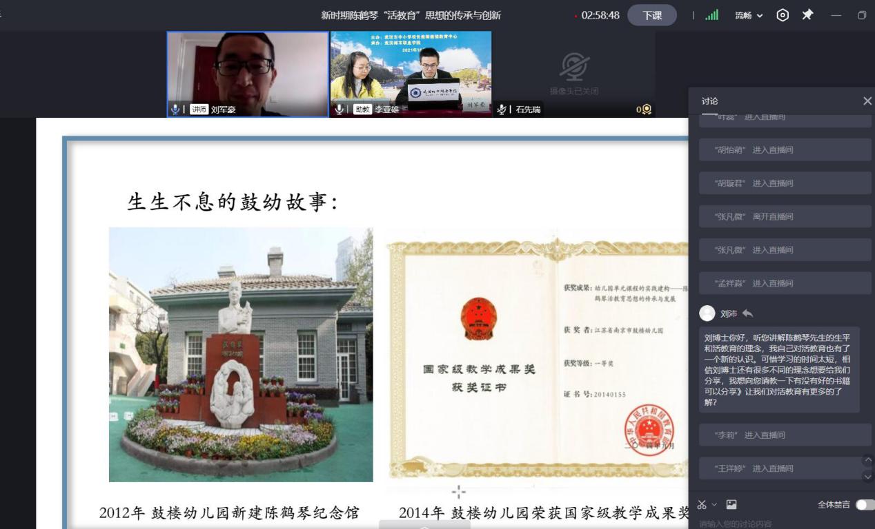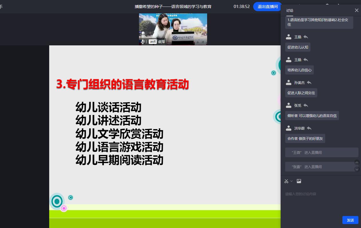 做为幼儿园的骨干力量,在安排好工作后,学员老师们守在电子设备前专心聆听专家们的在线分享,结合自己工作经验与专家们云端互动,精彩的学员点评和专家答疑碰撞出思想的火花,收获干货满满。