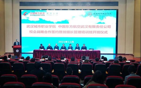 11月10日,学校与中国东方航空武汉公司在南校区报告厅续签战略合作协议,达成进一步深化合作意向,将在设立乘务订单班、地勤订单班等多个方面开展新的合作。