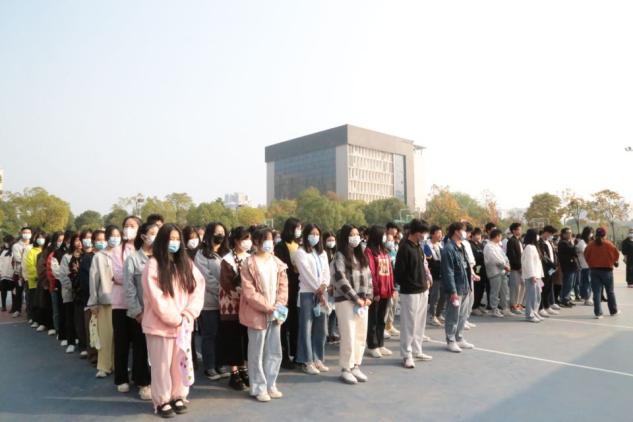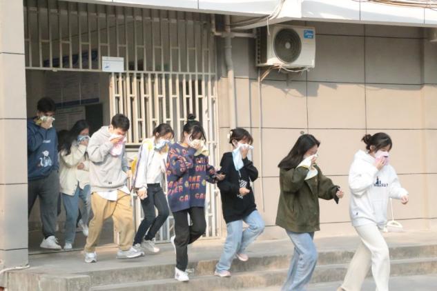 在现场负责老师和学生干部的带领下,学生们用湿毛巾、衣服等物品捂住口鼻按照逃生演练方案上设定的逃生路线,迅速高效、井然有序地撤出寝室楼。短短3分钟,人员撤离全部结束。整个消防安全演练过程规范、有序、安全、高效,老师和同学们临危不乱,秩序井然。