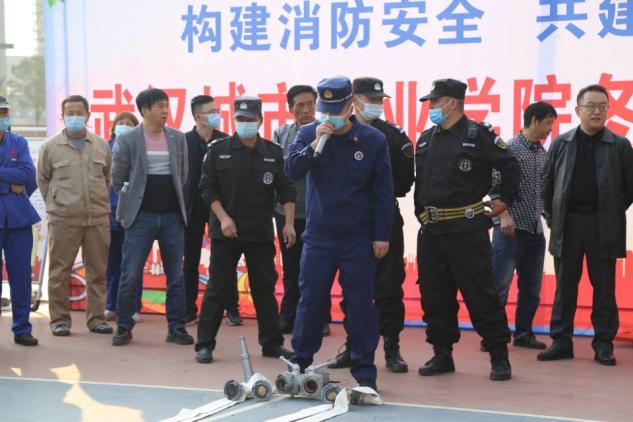 为了加强消防安全应急能力,掌握消防安全知识,我校于2021年11月28日下午15:00在北区篮球场开展了消防安全应急实战演练。参加本次活动的有副校长杨爱民,保卫处处长夏昉,北区各学院党总支书记,各学院辅导员老师,学校保卫处、后勤处等部门负责人以及各学院学生代表。活动由保卫处副处长张欣主持。