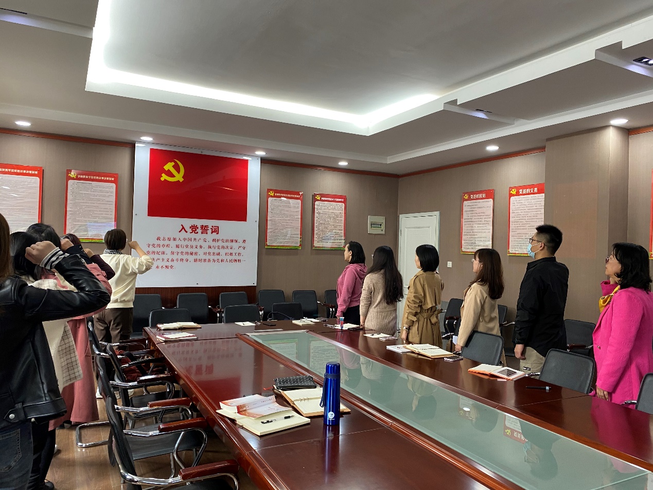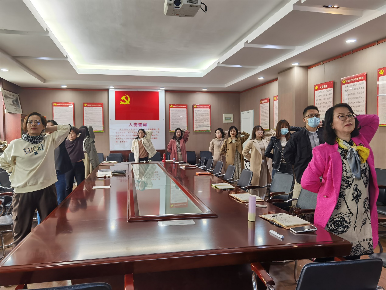 本次党日活动由学前教师第二党支部书记马豫主持。按照会议流程,支部副书记龙宇反馈11月党费收缴和一日捐情况。接下来,学前教师第二党支部党员教师们集体重温了入党誓词。