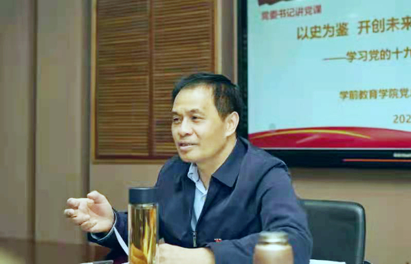 11月26日,党委书记邓院方在学前教育学院党建工作室为学前教育学院党总支和人事处党支部党员上了一堂“深入学习贯彻十九届六中全会精神”专题党课。