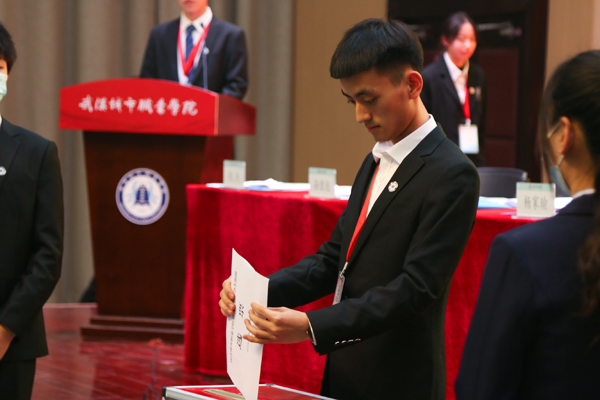 大会听取并审议通过了《武汉城市职业学院第三届学生会工作报告》,经过全体代表投票和严格计票,杨柳青等17名同学当选为武汉城市职业学院第四届学生会委员会委员,徐艾琳等5名同学当选为武汉城市职业学院第四届学生会主席团成员。校团委张琦老师被聘为学生会秘书长。