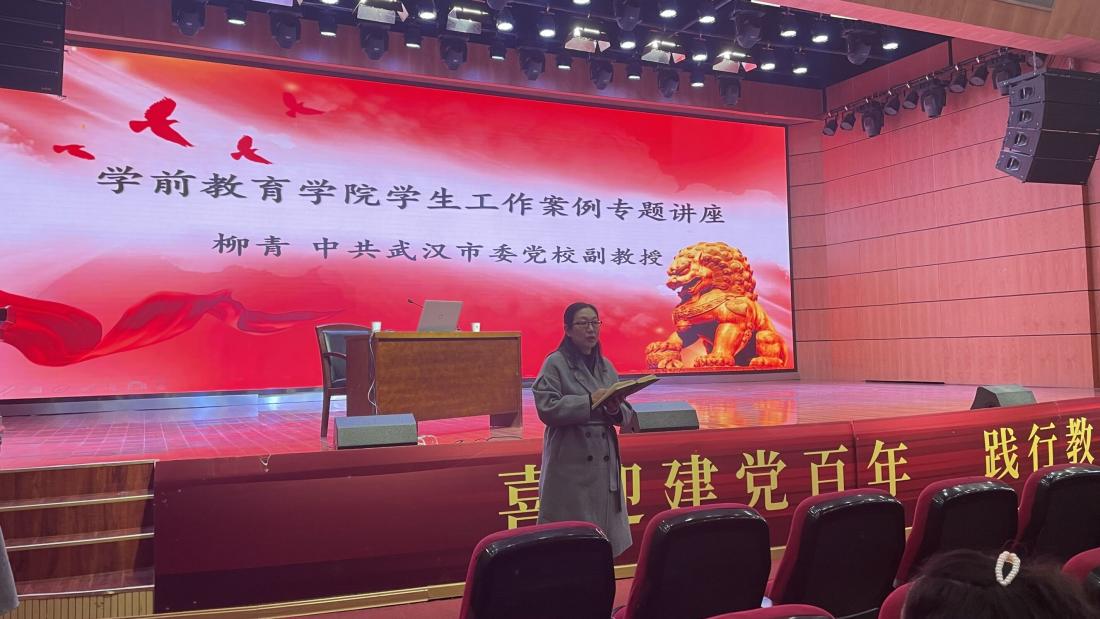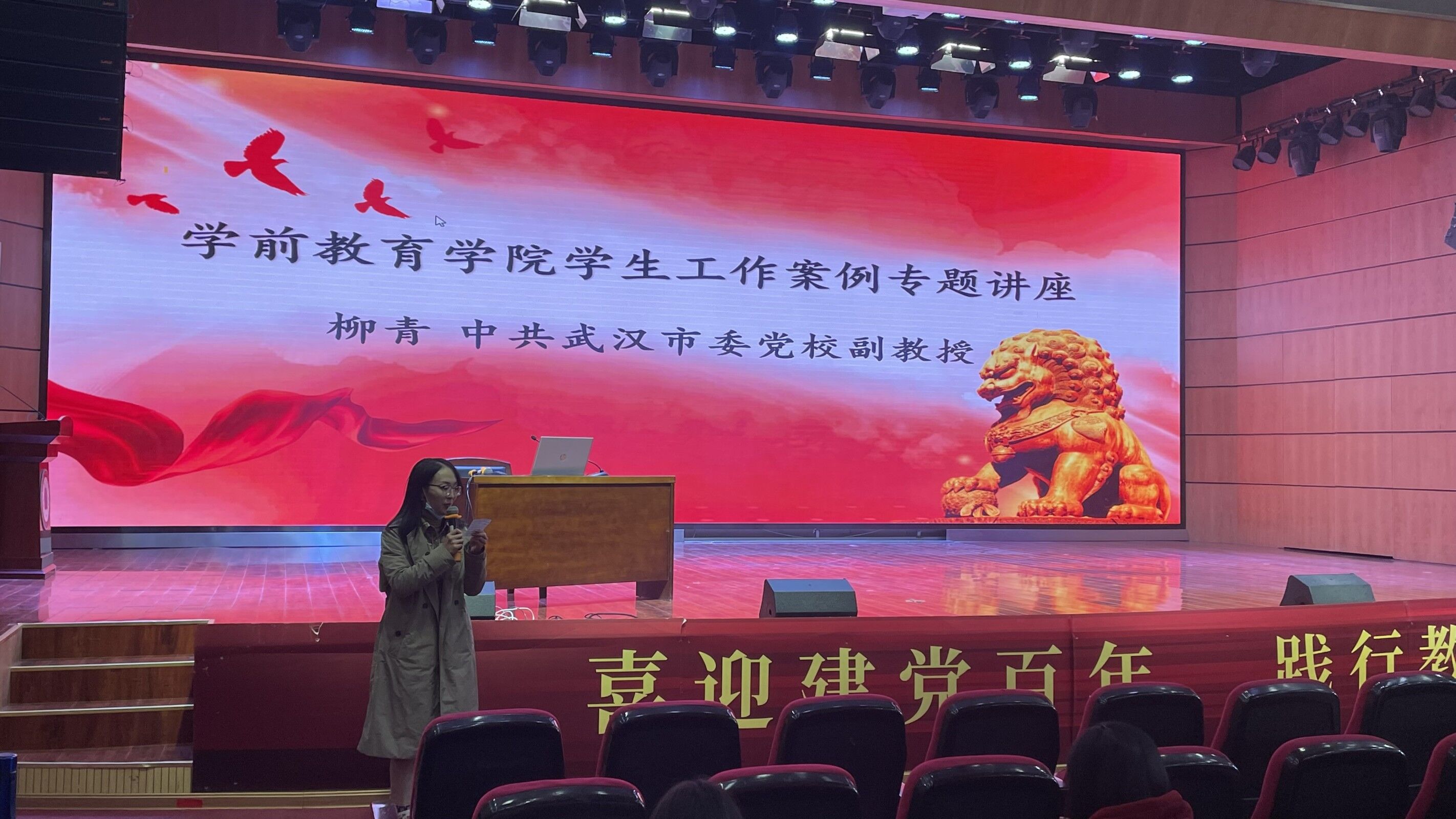 为了进一步帮助班主任老师开展学生工作,提高教育教学能力。12月2日下午,学前教育学院小礼堂开展了学生工作案例专题讲座。此次讲座特邀请中共武汉市委党校副教授柳青担任主讲,学前教育学院党总支书记张沛主持,学前教育学院副院长杨爱苹、全体班主任和辅导员老师参加学习。