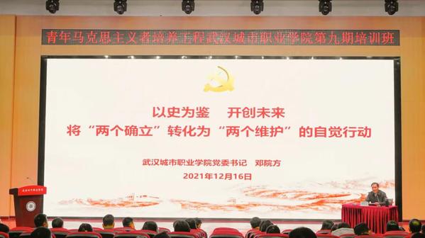 12月16日晚,党的十九届六中全会精神宣讲报告暨第九期“青马工程”培训班辅导报告在南校区报告厅举行。学校党委书记邓院方做党的十九届六中全会精神专题宣讲,学校相关职能部门负责人,各学院学办主任、分团委书记、副书记、辅导员代表以及“青马工程”全体学员聆听了报告。