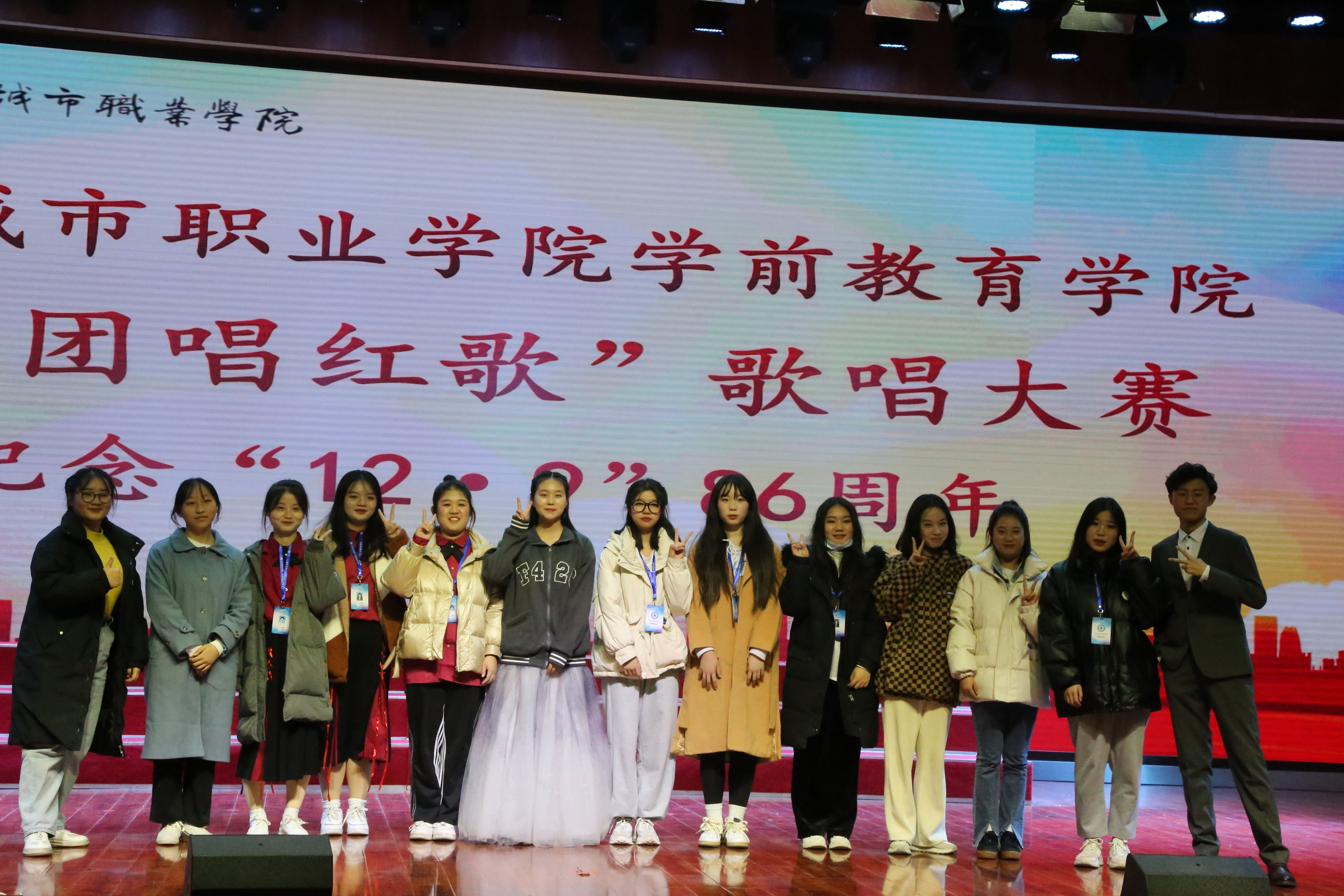 为纪念“一二·九”学生爱国运动86周年,学前教育学院响应校团委号召,12月16日于北区小礼堂举行“团团唱红歌”歌唱大赛。本次活动由学前教育学院分团委、学生会和音乐教研室共同承办。学前教育学院党总支书记张沛、副院长汤晓宁、教学办主任胡沙、音乐教研室主任康玲、合唱指导老师张利军、分团委书记曾志远、分团委副书记叶晓芳及全体团学工作人员参加了此次活动。比赛特邀音乐教研室老师毕骏峰、胡海燕、谢玮、何晶、袁振祖、孔迪担任评委。
