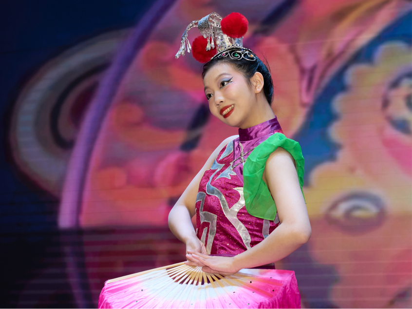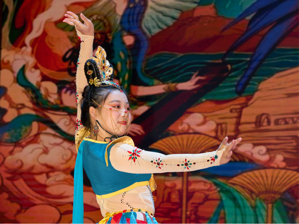 技能2002班沈莉的《俏梦影》欢快俏皮,每个舞蹈动作都展现了孩童的古灵精怪,点燃了全场气氛。