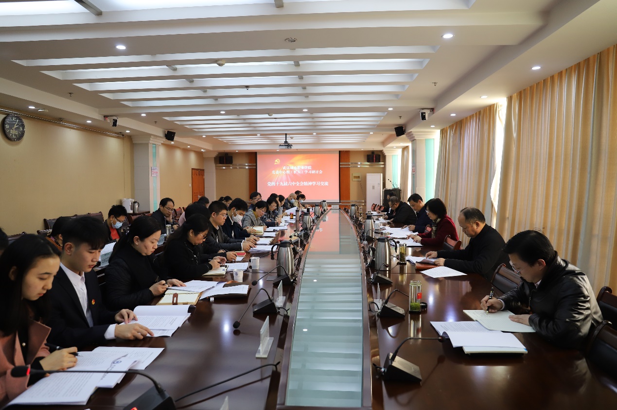 11月17日,武汉城市职业学院党委召开中心组(扩大)会议,学习贯彻党的十九届六中全会精神,校领导班子全体成员分别在会上作交流发言并部署全校学习宣传贯彻工作,要求领导干部先学一步、深学一层,以“关键少数”带动“绝大多数”,准确把握全会精神实质,迅速在师生群体中掀起学习宣传热潮。