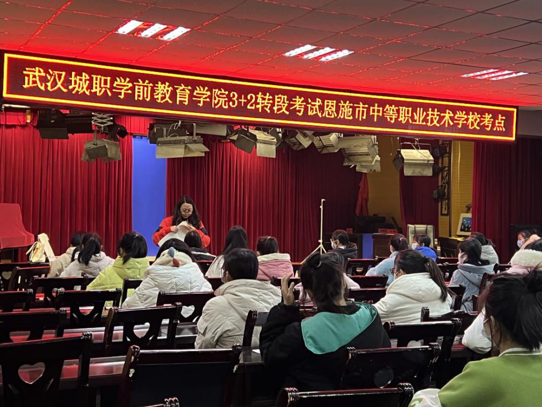 1月3日上午10:30学前教育学院汤晓宁副院长、教务处邱细华主任、教学办胡沙主任,1月4日上午07:30学前教育学院杨素苹副院长、张沛副书记带领我院教师分赴恩施中职、东西湖职校及武汉三职开展2022年学前教育专业中高职衔接“3+2”转段专业理论考试和专业技能考试工作。