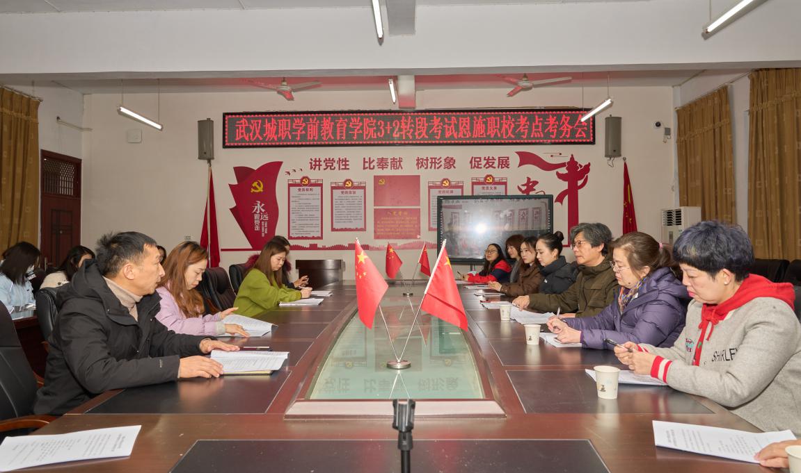 我院及3所中职学校都非常重视此次转段考核,提前召开考前筹备会,对相关工作进行了安排和布置。在3+2转段考务会上,恩施中等职业技术学校学前教育部杨建戎主任对整个考务流程、场地、教师进行了介绍,学前教育学院汤晓宁副院长对整个考务工作给予高度评价,两校教师就专业技能考试打分标准展开讨论。