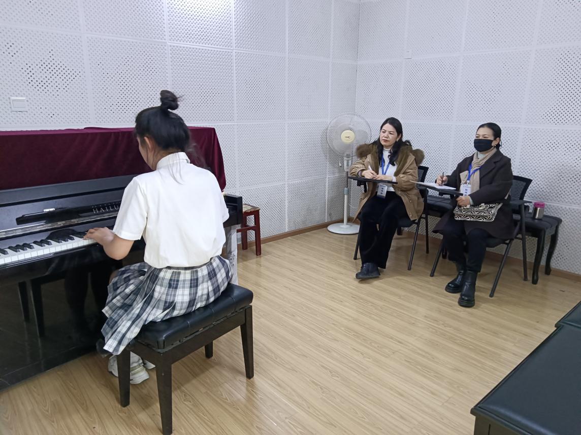 美术考试结束后分组同步进行儿歌弹唱、幼儿故事讲述及舞蹈表演考试。在儿歌弹唱过程中,考生们的编配演唱演奏都不错,动作和指法到位。在讲故事过程中,大部分考生都能流畅完整生动地讲好故事,普通话标准,配以相应手势及动画背景,活泼生动。舞蹈表演考试考生需要完成1个3分钟的成品舞,考生们都身着舞蹈服,跟随音乐翩翩起舞,少数考生舞蹈基本功扎实,感情投入。