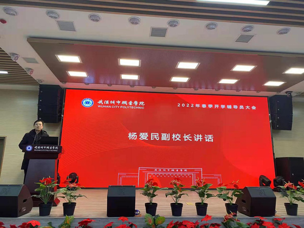 最后,副校长杨爱民讲话,他向全体辅导员表示新春慰问,肯定学工人敢拼、敢想、敢创的扎实工作作风,表达了学校党委对辅导员队伍的重视和关心。他勉励辅导员们要踔厉奋发,笃行不怠,进一步认清形势,找准目标,以扎实的工作接受各方面的考验,为学校立德树人工作任务落实落细落好做出新的更大贡献。