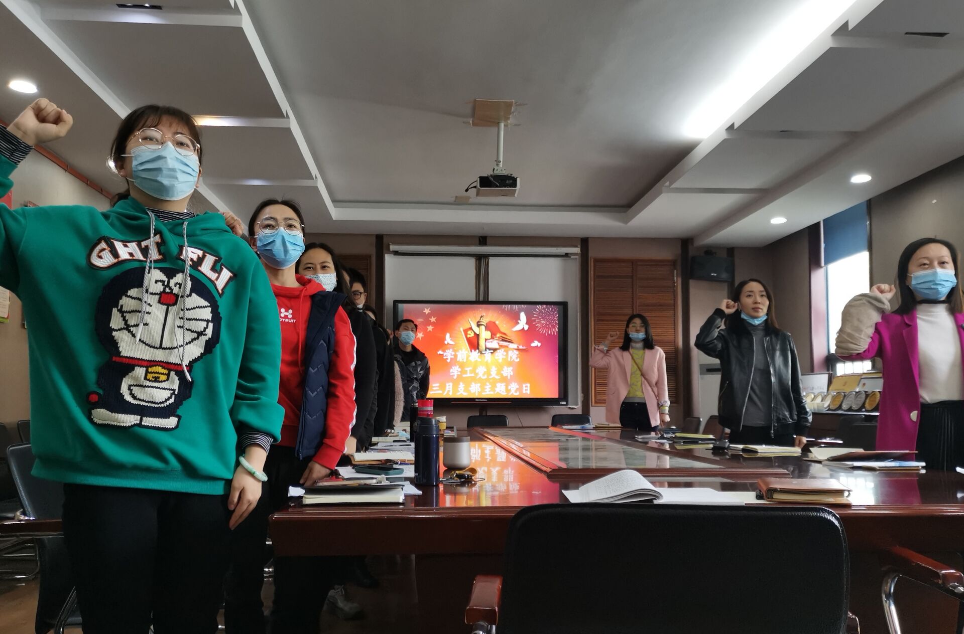 为深入学习贯彻习近平总书记近期重要讲话精神、全面贯彻落实党的十九届六中全会精神,学前学工党支部于2022年3月22号上午在艺术楼一楼会议室召开3月支部主题党日活动。会议由组织委员张舒主持。