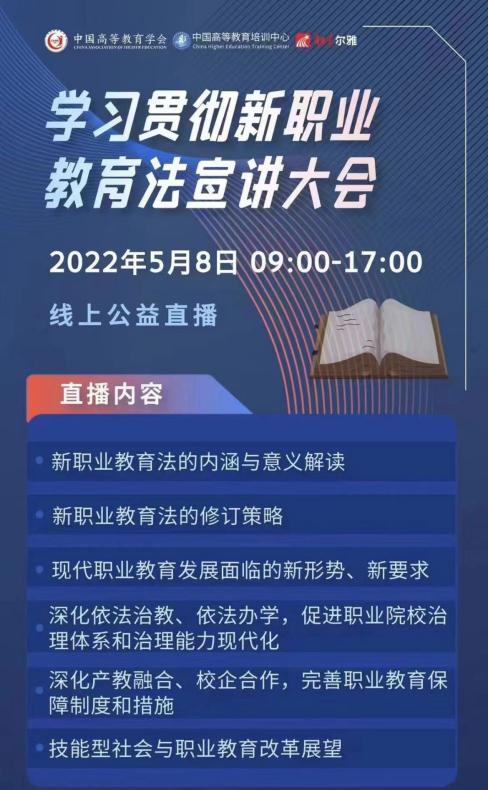 5月8日,武汉城市职业学院学前教育学院音乐教研室全体教师在线上观看学习了《新职业教育法宣讲大会》。会议从上午09:00开始至下午5:00结束。会议解读了新职业教育法的内涵、意义及修订策略,分析了现代职业教育发展所面临的新形势、新要求,剖析了深化产教融合、校企合作、完善职业教育保障制度和措施,同时展望了能型社会与职业教育的改革。