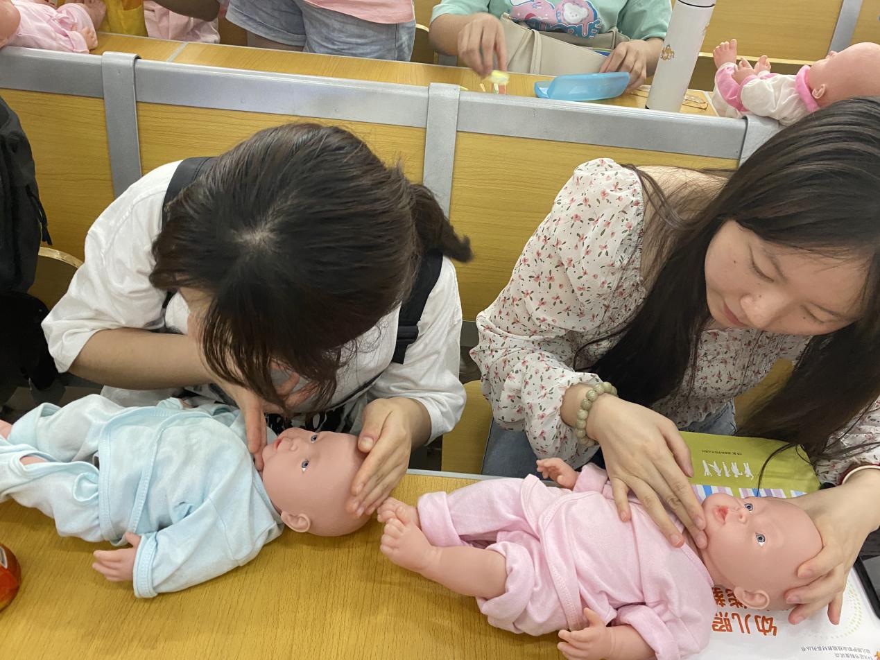 通过培训,同学们纷纷表示对婴幼儿年龄发展特点、环境创设的原则和方法、亲子活动设计与指导等相关知识技能有了更深刻的理解和把握。对于如头皮血肿、生命体征测量等婴幼儿意外伤害和日常保健,同学们在老师的带领下利用仿真娃娃进行实操训练,完成训练后老师进行总结,并就同学们操作错误或不规范的地方进行纠正和指导,学生们收获颇多。