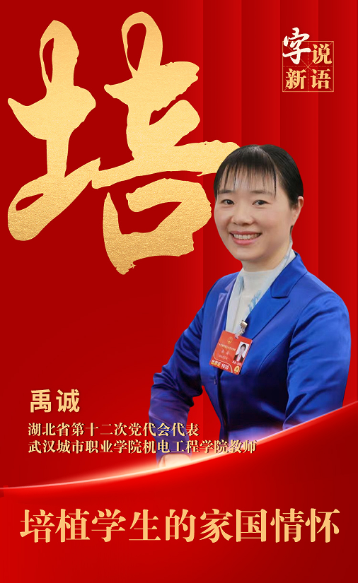 湖北省第十二次党代会代表、我校机电工程学院教师禹诚用一个“培”字来总结自己领域、行业五年后的发展目标和方向:培养职业人才、培训技术技能、培育工匠精神,重要的是培植学生的家国情怀,践行社会主义核心价值观。