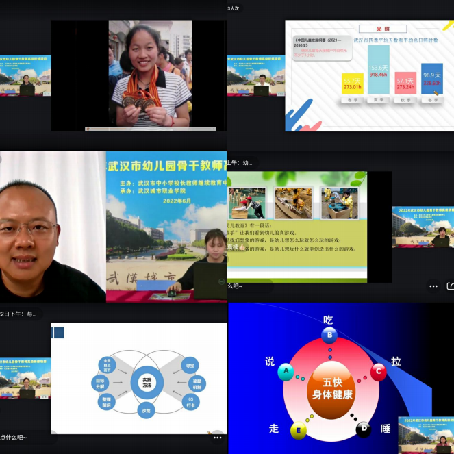 “百年大计,教育为本;教育大计,教师为本”,在骄阳似火的6月,武汉市幼儿园骨干教师高级研修培训正在如火如荼进行。在专家们的精心指导下,学员们专注地学习,如饥似渴的吸吮着知识的甘露,或认真倾听,或各抒己见,在互动交流中提升自己,收获颇丰。