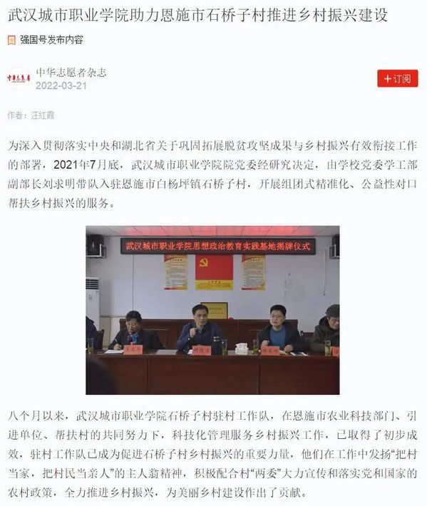 恩施市石桥子村是学校扶贫工作的定点帮扶村,同时也是“武汉城市职业学院思想政治教育实践基地”。