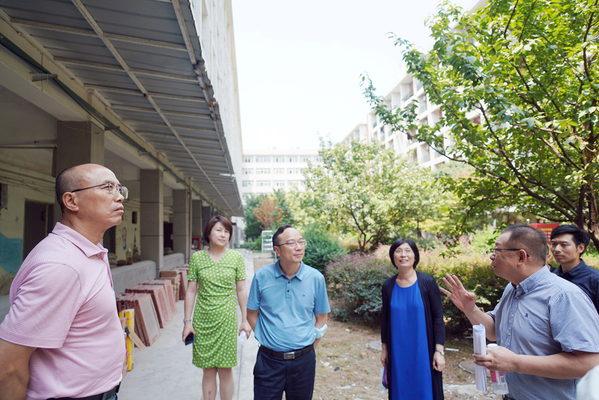 冒着酷暑进行现场检查过程中,张组长一行对学校实践活动项目和成效给予了充分肯定,并叮嘱要实事办实、好事办好,切实克服工期紧,任务重的困难,保障各项任务如期完成,确保不影响学校开学和师生学习生活。学校党委副书记、校长张英,党委副书记、纪委书记、监察专员刘晓天及相关部门负责人陪同现场调研。